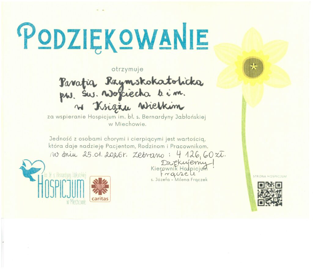 27.03.26 /pt/ godz. 18.00 /po Mszy św./ ulice Danysz, Urzędnicza, Wielka Wieś /tzw. domki/;