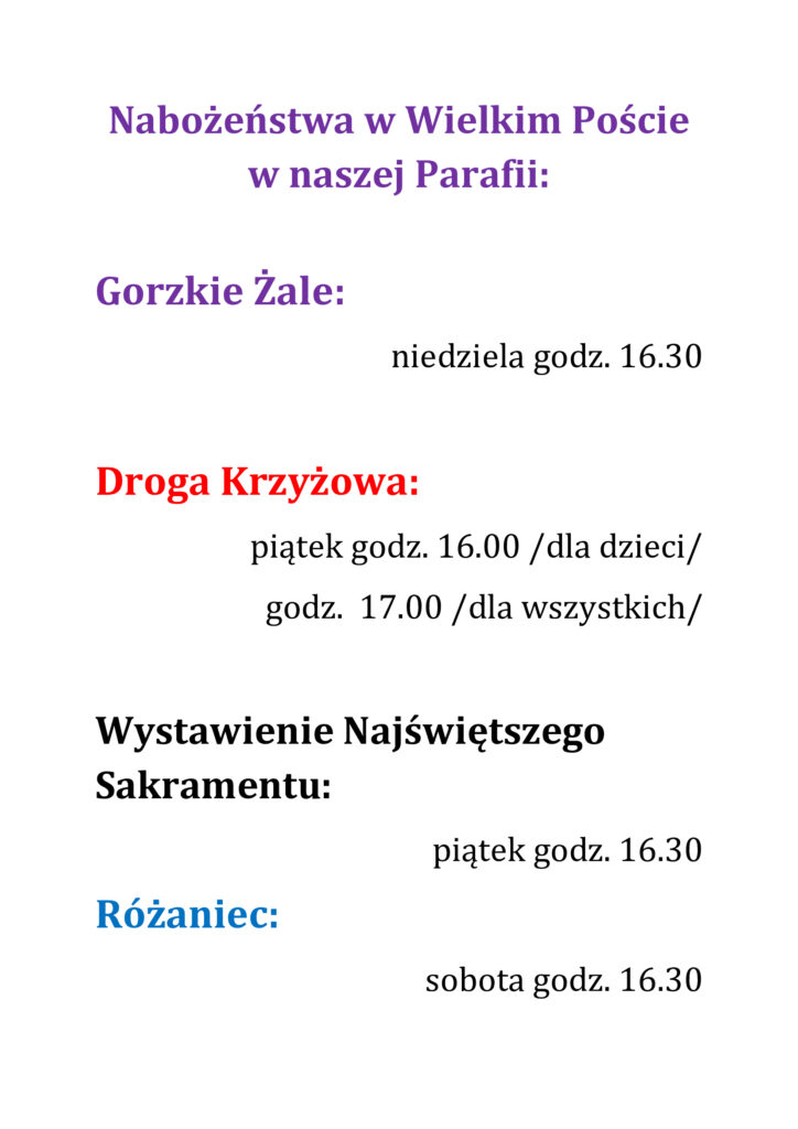 27.02.26 /pt/ godz. 18.00 /po Mszy św./ ulica Kościelna;