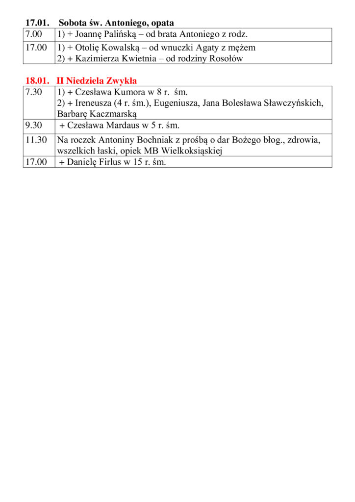 13 I 2026 godz. 17.00 – od rodziny Gąsiorów