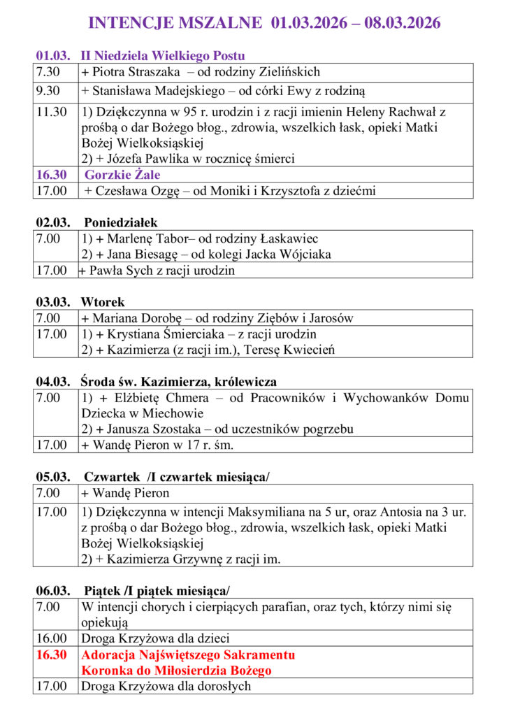 27.02.2026 godz. 17.00 – od Grażyny i Andrzeja Król z rodz.