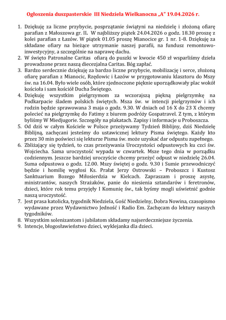 9 IV 2026 godz. 7.00 – od katechety z Wodzisławia