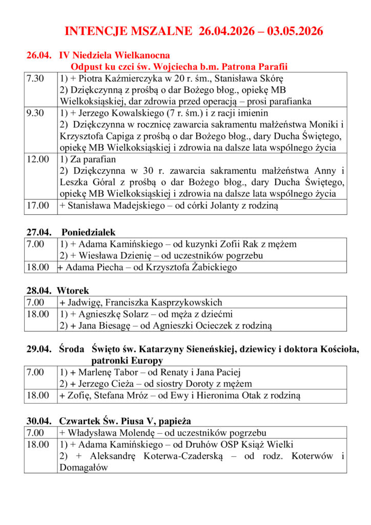Intencje mszalne: